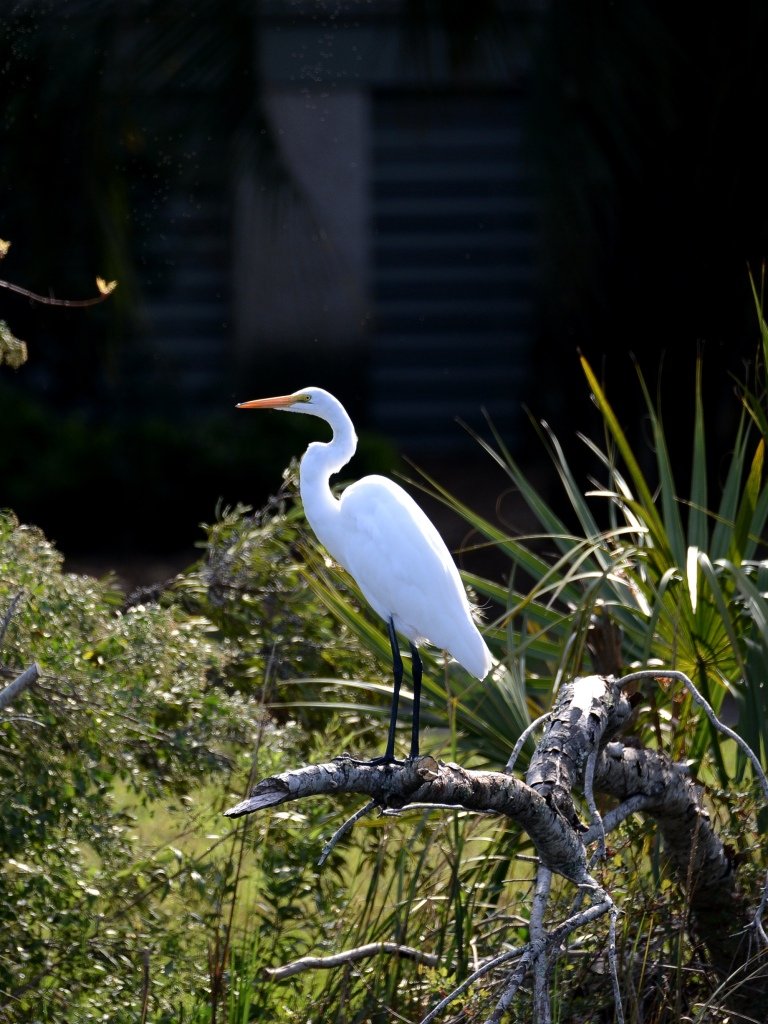 The short answer—Egrets and herons are closely related. Generally, Egrets are white birds and Herons dark, but that does not really tell the true story. The scientific study of taxonomy separates all living things into smaller and smaller increments until the get down to the species level. This breakdown results from finding similarities based upon body structure and now genetics. You may remember learning in your high school biology classes that the last three taxonomic categories are Family, Genus, and Species. One might think of things in at the Family level of being comparable to cousins, the Genus would be siblings, and the species the individual.