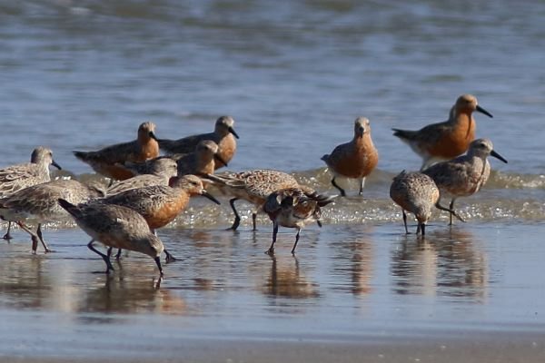 A good example, can be seen in the Red Knots visiting Seabrook Island. During the winter, these grayish birds with white bellies roam the beach. The sands and muds of the beach enable the dark upper surface and the white shadow reducing lower surface to provide some camouflage. By the time they leave us in May, they will be a speckled backed bird with a rusty colored chest and a bright white belly. Can you guess why they change colors?