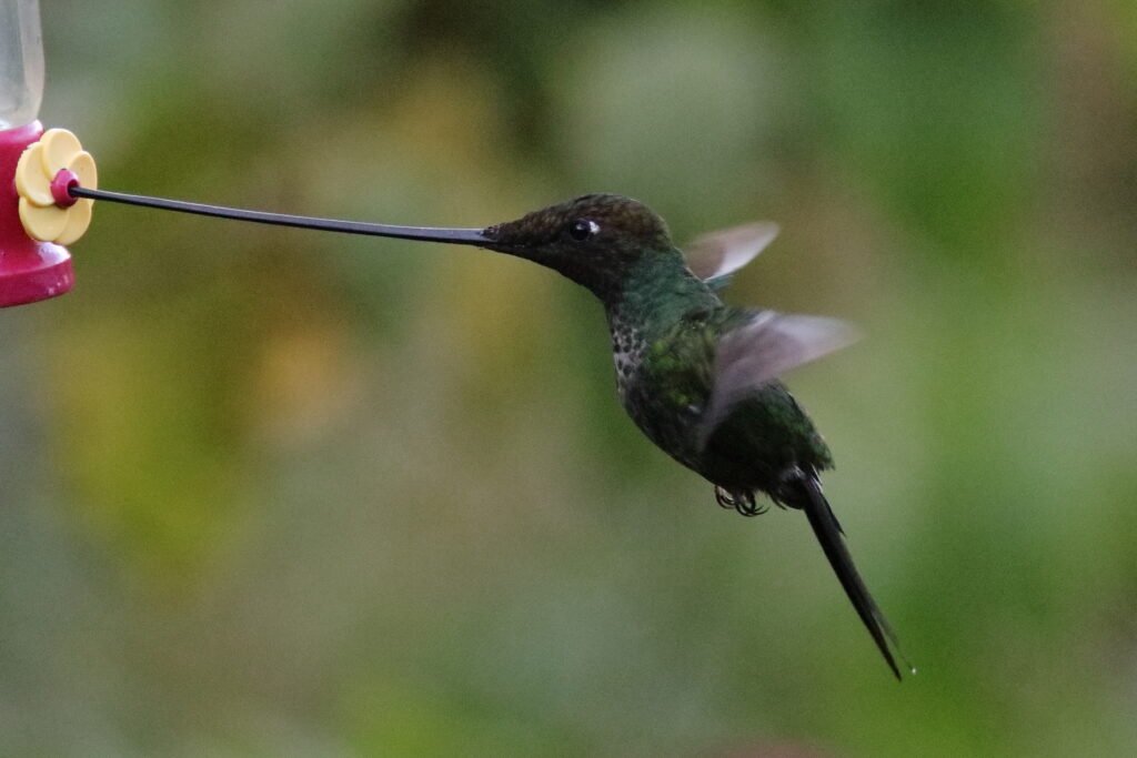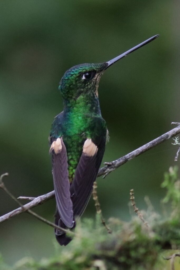 Sword-billed Hummingbird – This, like the Giant Hummingbird, was a highly desirable sighting. We marveled at how this bird could spear that bill into the small port of a hummingbird feeder or a flower. A higher elevation species (7,500 to 9,000 FASL), we would only see it at one location!