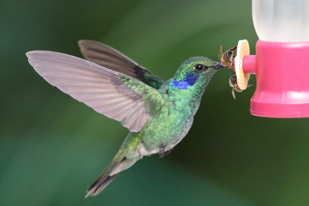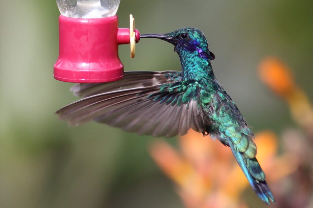 Lesser Violetear – This doppelganger of the Sparkling Violetear likes lower elevations (3,600 to 6,900 FASL) and is a smaller bird. Their location helps with identification most of the time. Like all of the other violetears, this has those violet feathers it can flair out when disturbed.