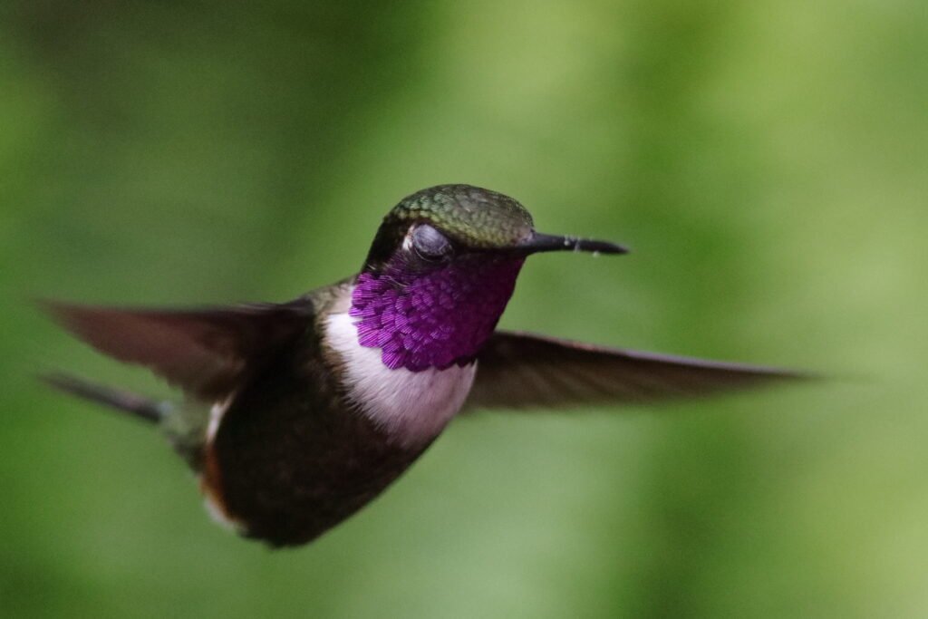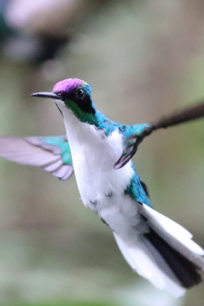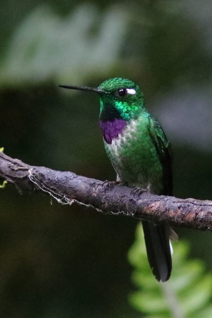 Purple-bibbed Whitetip – Recognized by the bright white patch on the tail, this species lives in a very thin zone between 3,600 and 4,200 FASL.