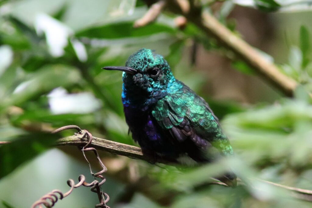 Crowned Woodnymph – A bird that can commonly be found through Central America into northern South America, scientists define 7 subspecies based upon physical characteristics. The male birds have a purple crown and the female a bright green crown.