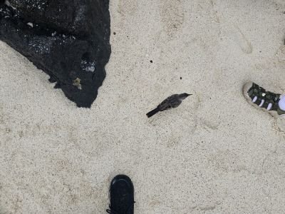 I did not get a picture of the San Cristobol Mockingbird unfortunately. It is smaller than the Española Mockingbird, but larger than the Galapagos Mockingbird. The birds overall color is daker than the Galapagos Mockingbird. The black is behind the eye as opposed to a mask. This species is only found on San Cristolbal Island.