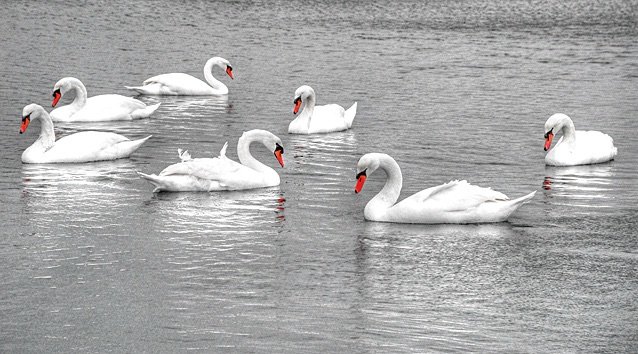 Seven Swans a swimming – the seven swimming waterfowl are most likely Mute Swans. These large birds were long kept in semi-domesticity in England, where they were considered property of the Crown.