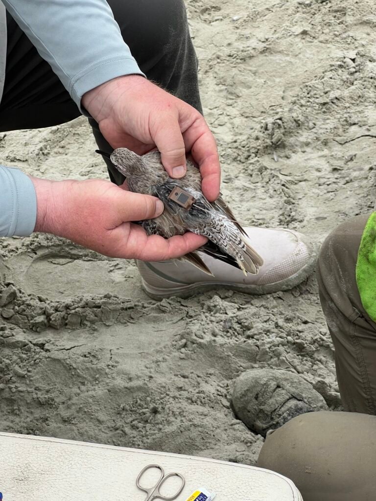 On March 31st, Shorebird Stewards from Seabrook Island and Kiawah Island assisted SC DNR and Georgia DNR with banding Red Knots on Kiawah. In addition to traditional numbered bands, several birds were fitted with Satellite trackers, giving scientists real-time date on their location, migration patterns and routes.