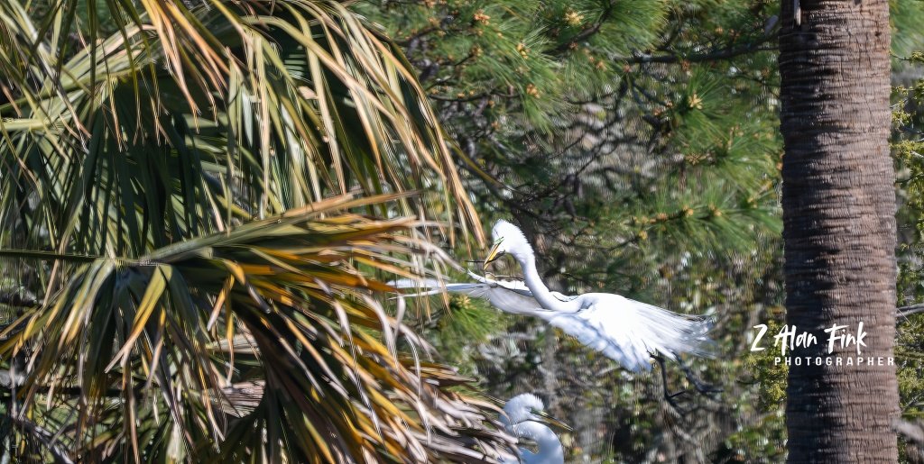 Spring has sprung on Seabrook Island and at the Rookery on the Ocean Winds golf course. Every Spring, the Rookery, which is located on hole four at this course comes alive with nesting activity. We scheduled the Seabrook Island Birders Golf Course Learning Together outing, for the March and April months, on Ocean Winds so that we can see how the nesting begins and then watch how the hatchlings develop and eventually leave the nest. Our March 17th outing was worth the visit. We observed Great Egrets, Wood storks, and Anhingas picking their location and building their nests to raise their young.