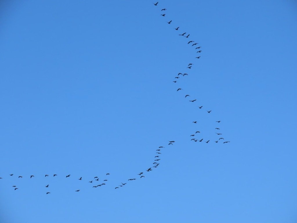 The other first-time experience for me was the migration pattern of the Double-crested Cormorants. While we were observing the Rookery, we witnessed multiple flights of these birds in V formation. At first, I thought it was a flight of geese heading north. It turned out to be approximately 175 Double-crested Cormorants migrating north to their breeding area. Double-crested cormorants breed across North America, including along the coasts and in large inland lakes, with many found in areas like the Great Lakes, and the St. Lawrence Seaway. We also saw a group flying in a single file, which they are also known to do.