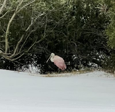 Deanna Forsythe noticed a Roseatte Spoonbill questioning its decision to expand its territory a little further north.