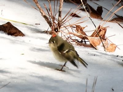 Walter and Jackie Brooks think this adorable Ruby-crowned Kinglet wasn’t happy with its cold feet. It was showing its ruby crown which usually is an indication it’s defending its territory or confronting a predator.
