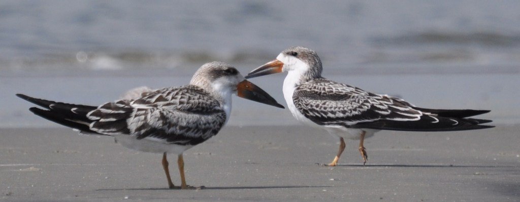 Probably one of the reasons Seabrookers can see so many skimmers is that there is a large breeding group on Deveaux Bank. As with all the seabirds, they build their nests in colonies, scratching out a shallow depression in the sand. This makes them very vulnerable in areas where beaches are heavily populated by humans. It’s to our benefit that the Deveaux rookery is so nearby.