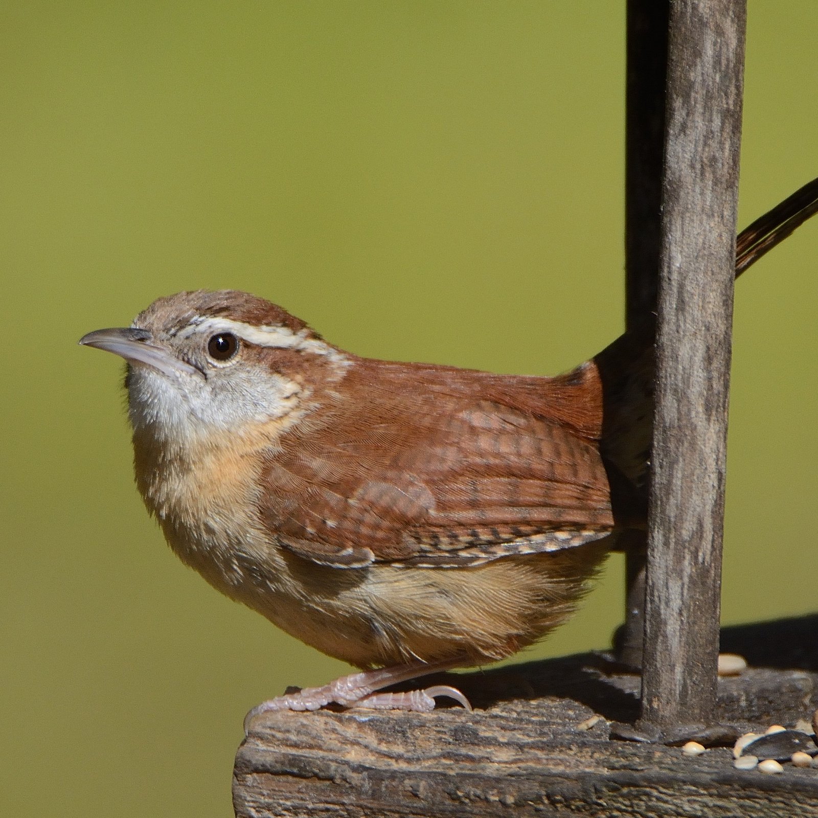 The Carolina Wren is the state bird of South Carolina and sings tea-kettle, tea-kettle, tea-kettle tea.