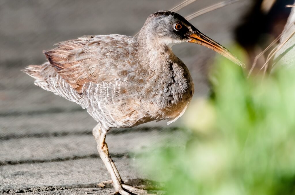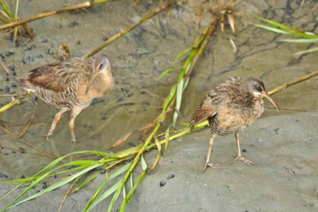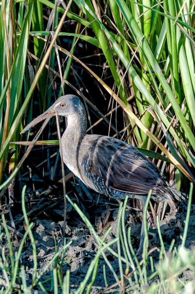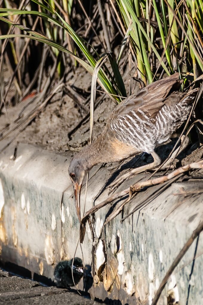 Are you familiar with the saying “thin as a rail”?  Well, this saying is attributed to the Rail’s lean body and the fact that this stealth bird has the ability to compress its body to such a degree that it can easily squeeze between stems of grass and plants almost melting into the vegetation and barely causing a ripple.  This tactic allows them to quickly disappear to escape their predators.  Clapper Rails are so effective at maintaining a low profile that their major nonhuman predators are pike, black bass, and other predatory fish which feed on their young.
