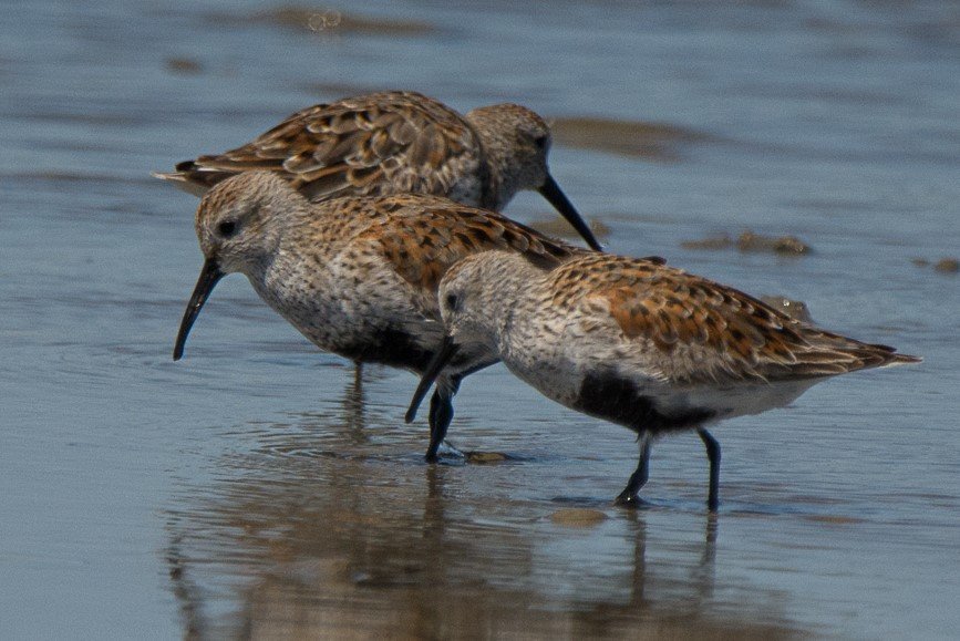 Dunlin breed in the Arctic regions of the world, but in winter are one of the most widespread shorebirds in North America, favoring coastal regions and feeding on mudflats in the falling tide.