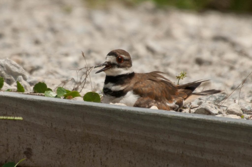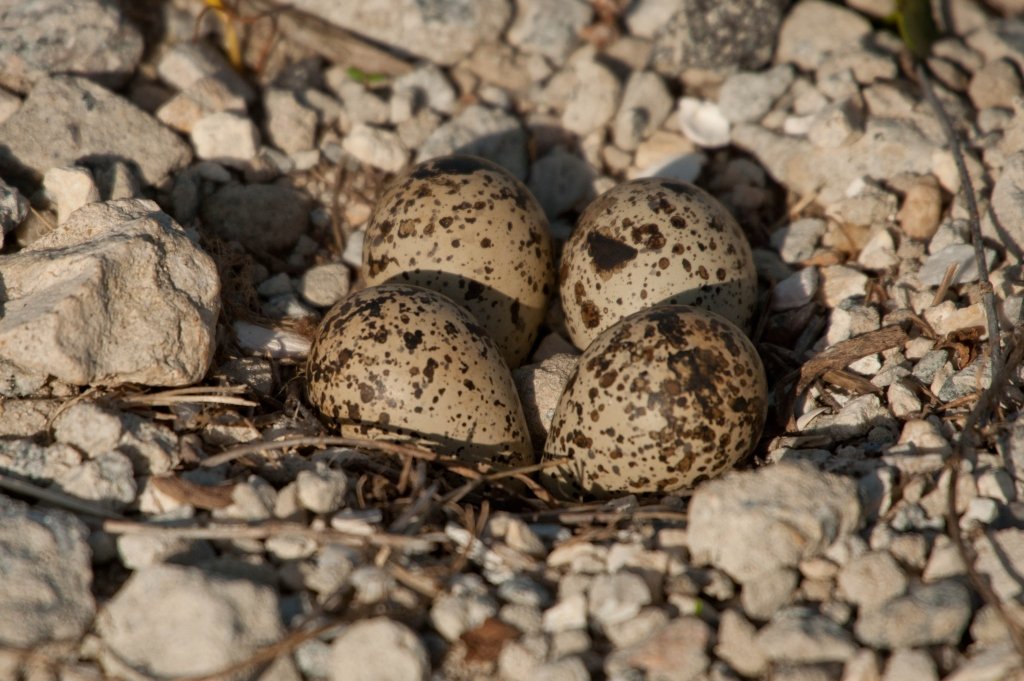 The Killdeer’s nest is a scrape or bare depression in the ground. It may add rocks, shells and other materials to the nest. To protect their nests the Killdeer will fly a short distance away and appear to have a broken wing, luring the threat away. Most noticeable among the Killdeer’s many calls is the high, plaintive kill -deer sound the bird is named for.