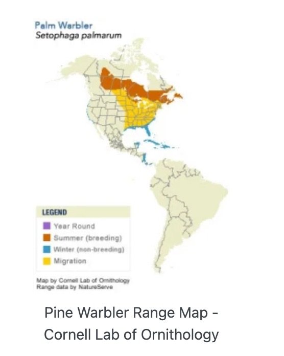 Although its name would seem to indicate that this bird is found mostly in palm trees, in fact it can be seen in a variety of habitats: open woodlands, low in thickets of shrubs, on the ground, and in open fields.