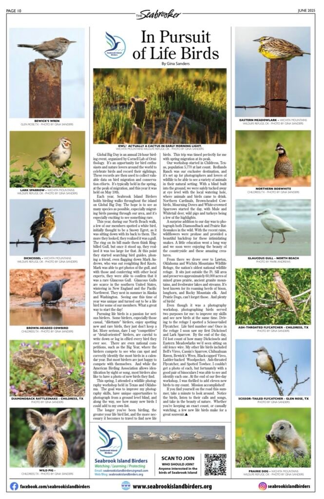 In case you don’t receive it, or haven’t had a chance to read it yet, we hope you will enjoy The Seabrooker’s June 2025 SIB article. Seabrook Island Birders (SIB) contributed a full page article on Page 10!