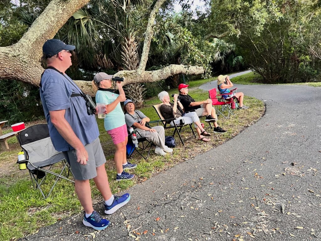 This activity is kind of self explanatory. During our summer months, here on the island, we take the opportunity to relax and see what birds have decided to stay with us post nesting and migration . Come join us and visit one our public areas such as Palmetto Lake. So grab a drink, a chair, your binocs and/or scope and camera for a time of sharing and learning with a birds-eye view.