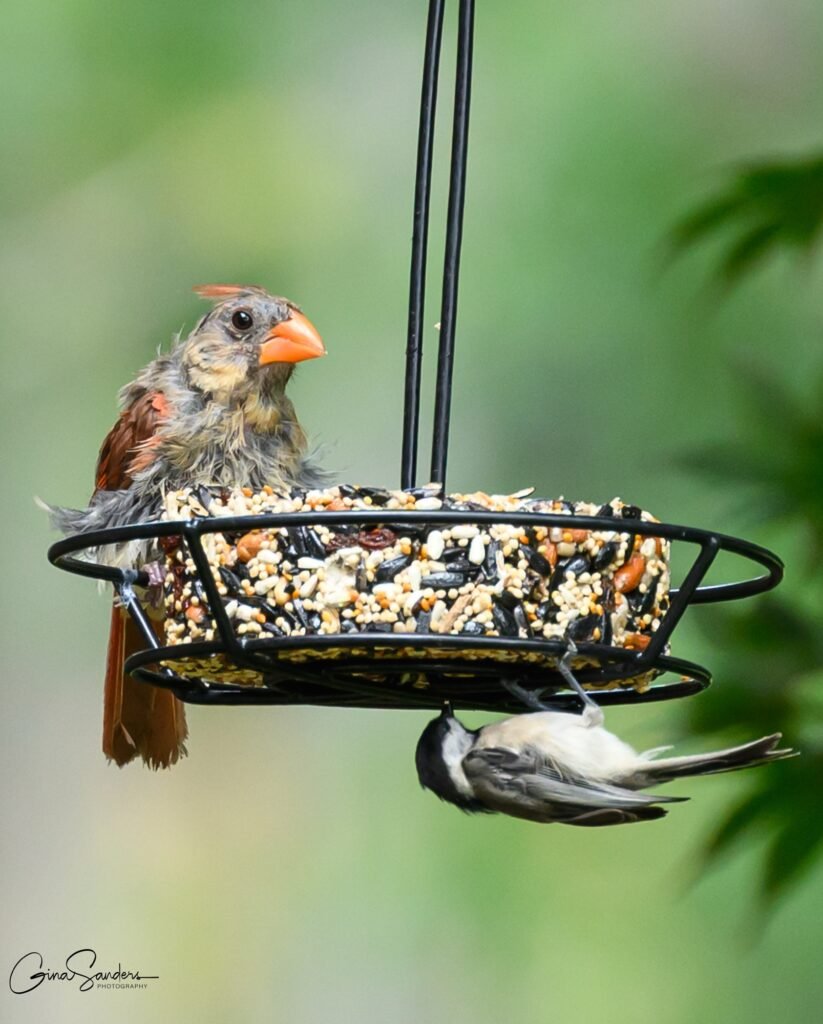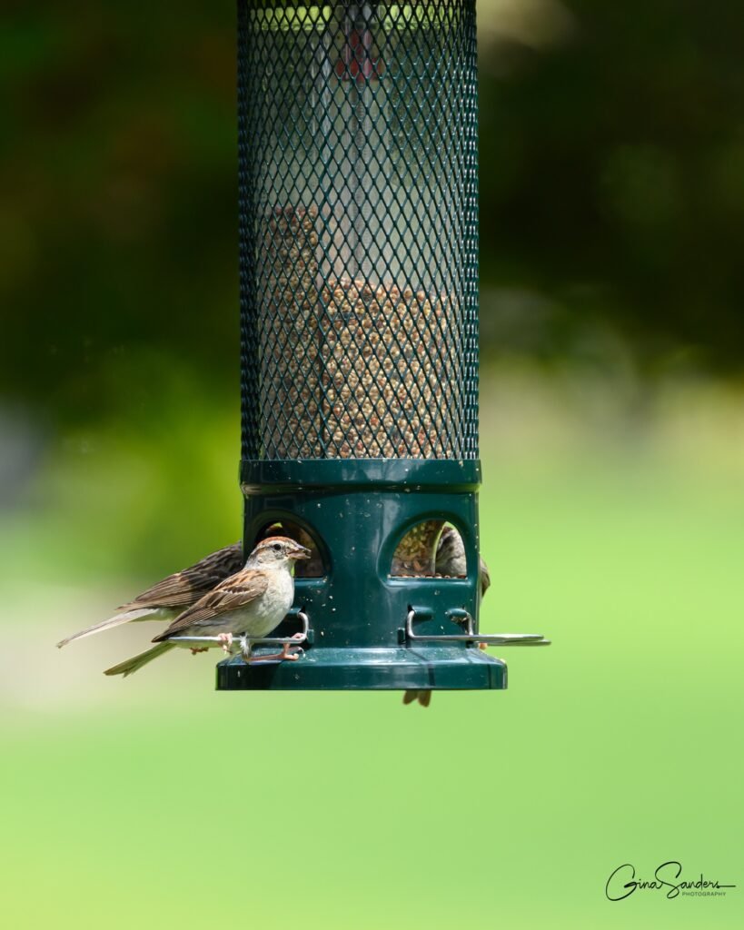 When I first put seeds out, if I sat in the chair right next to the window, all of the birds would fly away. When I moved to a chair away from the window, they came back, but I couldn’t see them as well. Now the regular visitors to the feeder usually don’t pay me any attention when I sit next to the window.
