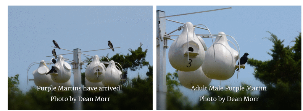 We will continue to follow the progress of these amazing birds and will provide future updates on nesting and banding opportunities, as well as educational activities for those who would like to learn more about Purple Martins.